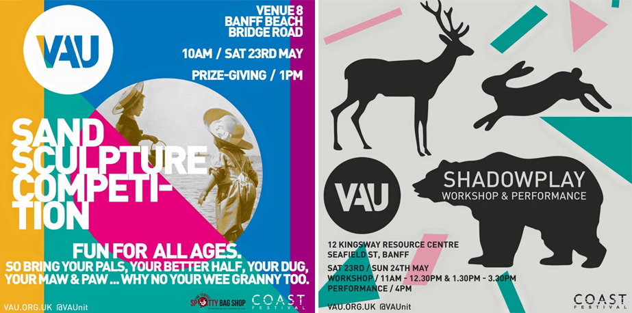 The weekend  of the 23rd May, we will be up at the Banff and Macduff Coast Festival, join VAUs Stuart Noble and Jenny Johnston as they host ‘Shadowplay’ as well as other members taking part and judging in the annual sandcastle competition. More information on the Coast Festival can be found !